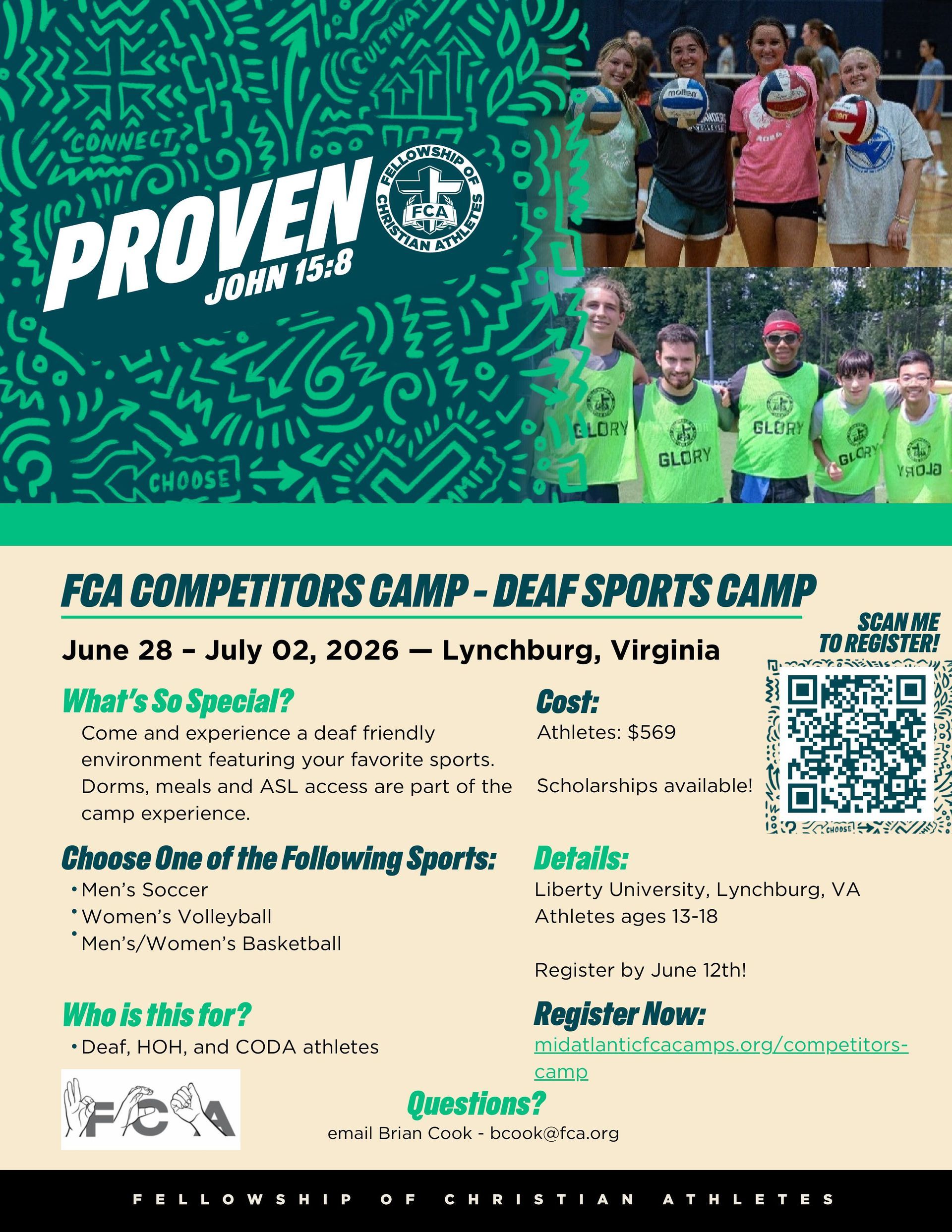 What: Deaf athletes will participate and grow in one of four Deaf Sport options (Men's Soccer, Women's Volleyball, and Men's and Women's Basketball) through practices, skills development and competition in an ASL environment, alongside hearing competitors.